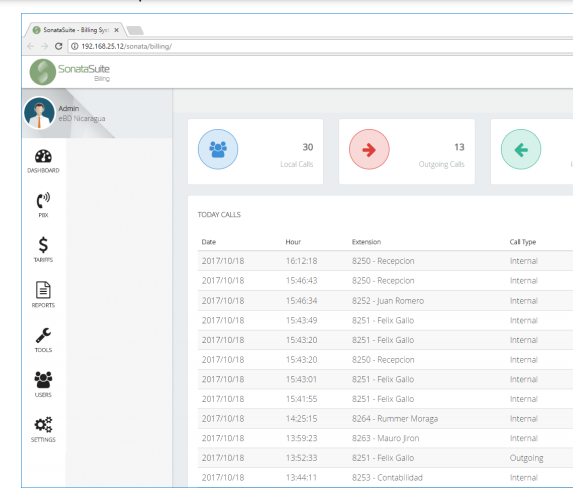 Sonata Switchboard is an application through which you can monitor in real time all the activity in your PBX.